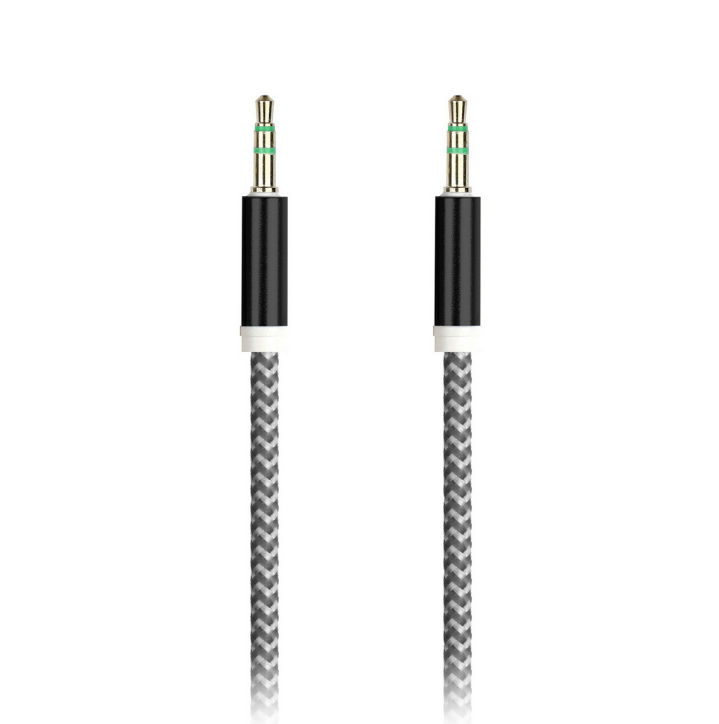 AUX кабель 3.5-3.5 мм (M-M), 1 м, черный, нейлоновая оплетка, (A-35-35 black)/100