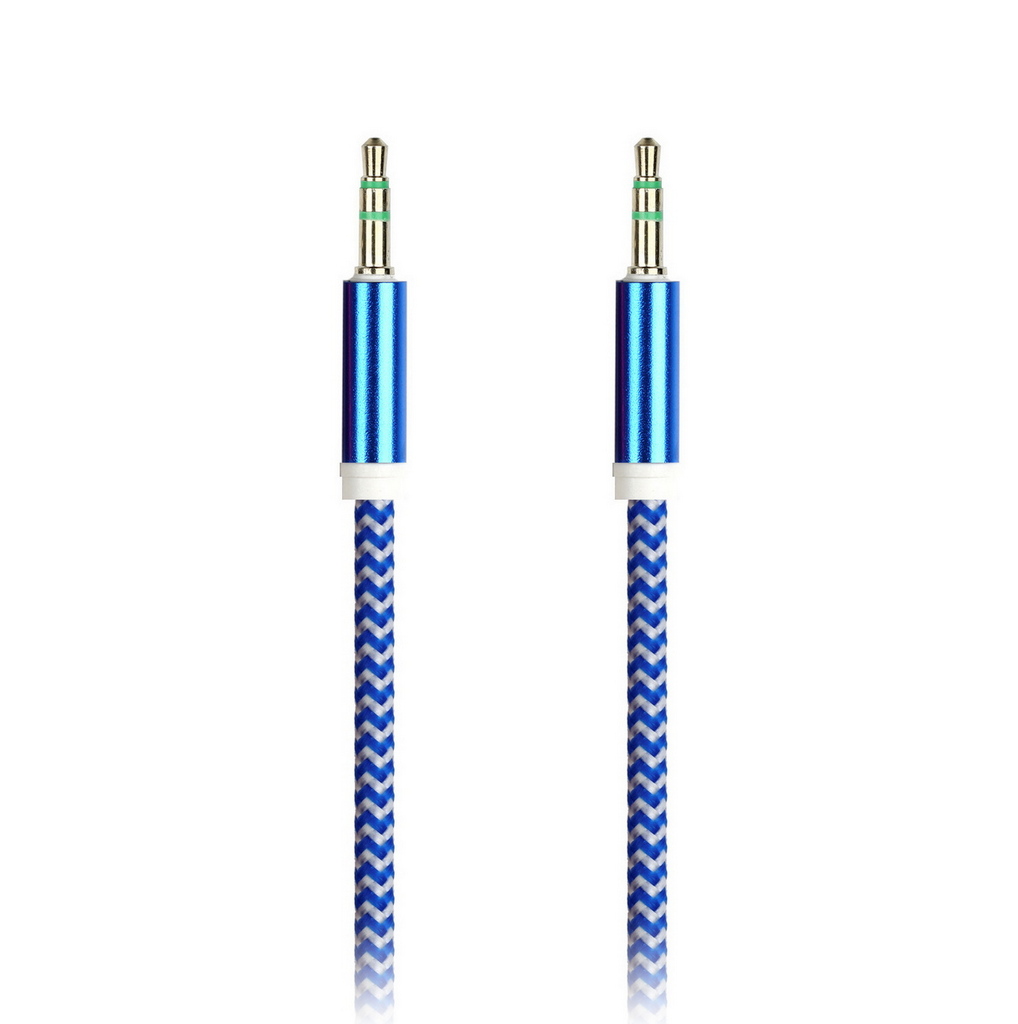 AUX кабель 3.5-3.5 мм (M-M), 1 м, синий, нейлоновая оплетка, (A-35-35 blue)/100