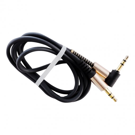 AUX кабель 3.5-3.5 мм (M-M), 1 м, черный, с Г-образным наконечником, (A-35-35-fold black)/100