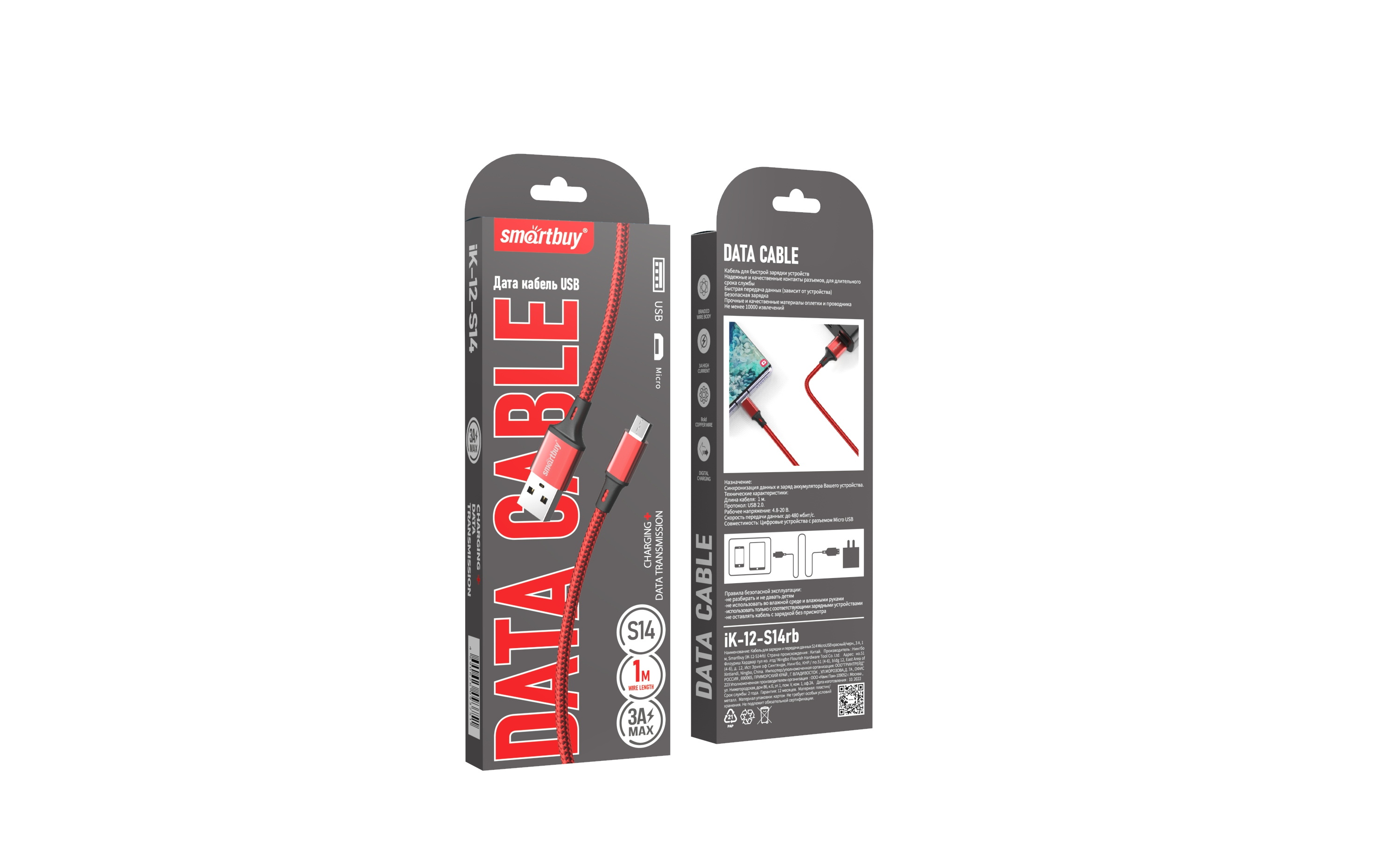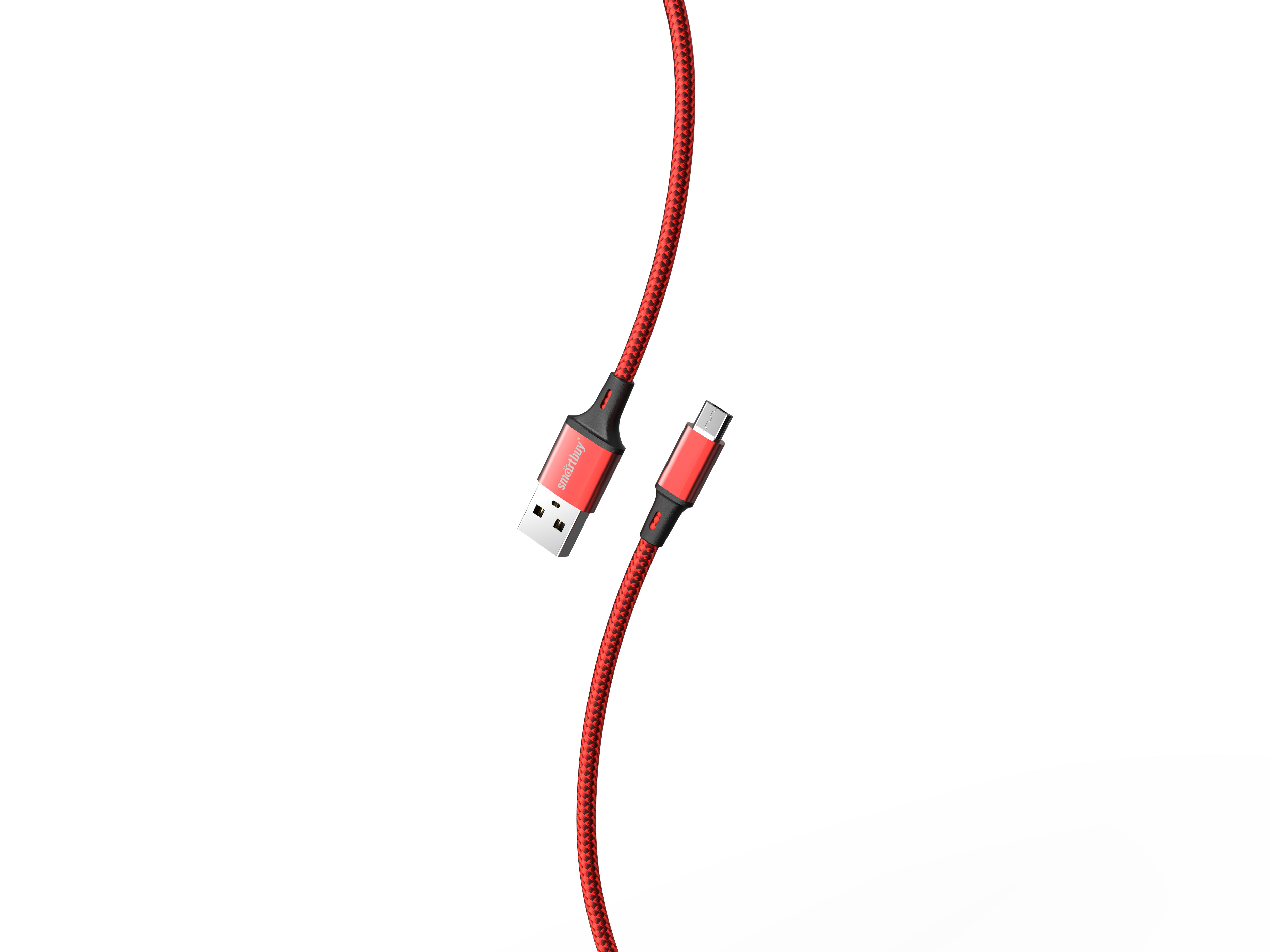 Кабель для зарядки и передачи данных S14 MicroUSB красный/черн., 3 А, 1 м, Smartbuy (iK-12-S14rb)