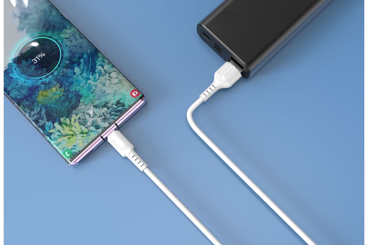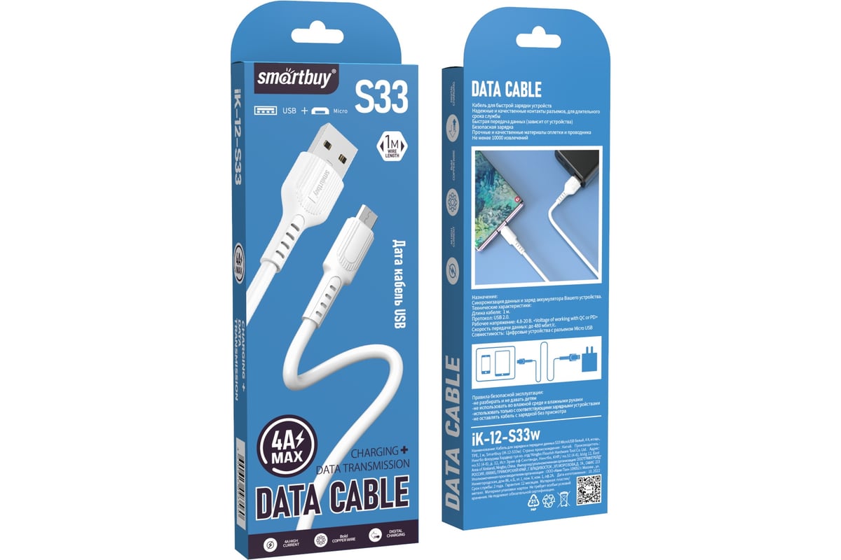 Кабель для зарядки и передачи данных S33 MicroUSB белый, 4 А, мощь, TPE, 1 м, Smartbuy (iK-12-S33w)