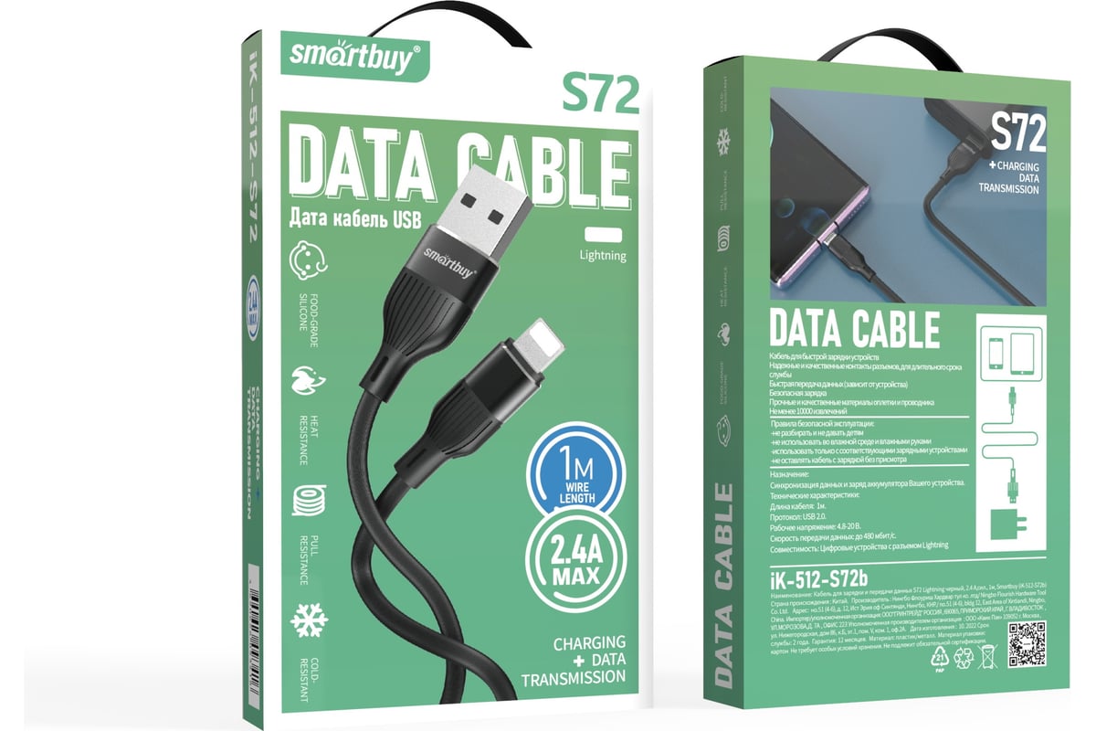 Кабель для зарядки и передачи данных S72 MicroUSB черный, 2.4 А, сил., 1м, Smartbuy (iK-12-S72b)