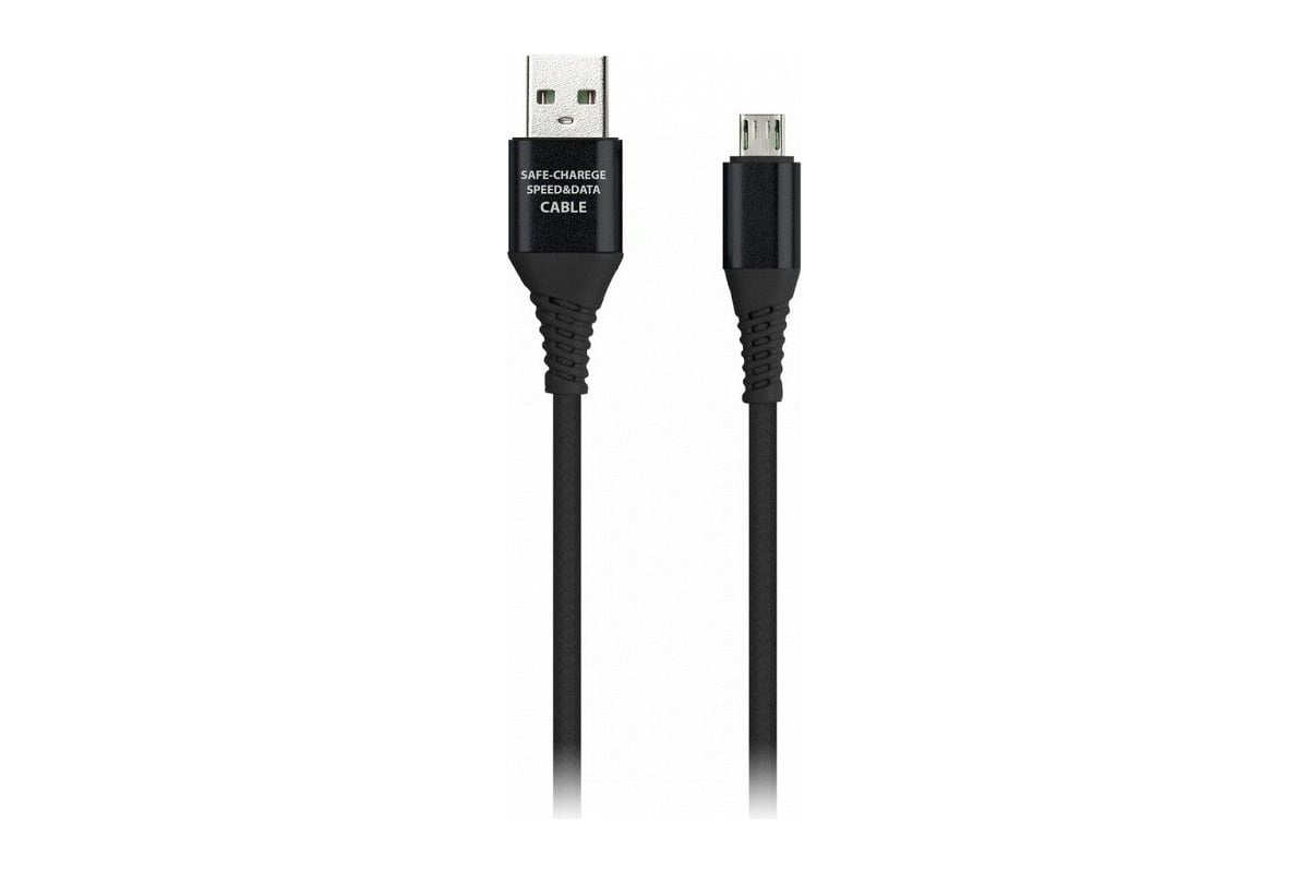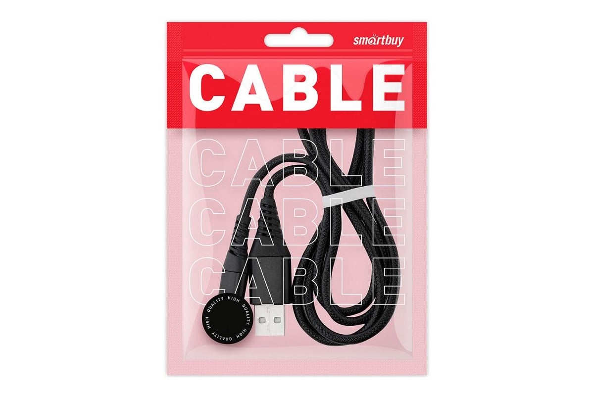 Дата-кабель Smartbuy Micro кабель в резин. оплетке Gear, 1м. мет.након., <2А, черн.(iK-12ERG black)