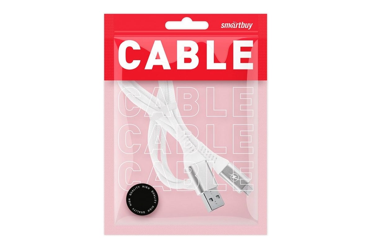 Дата-кабель Smartbuy Micro кабель в резин. оплетке Gear, 1м. мет.након., <2А, бел.(iK-12ERG white)