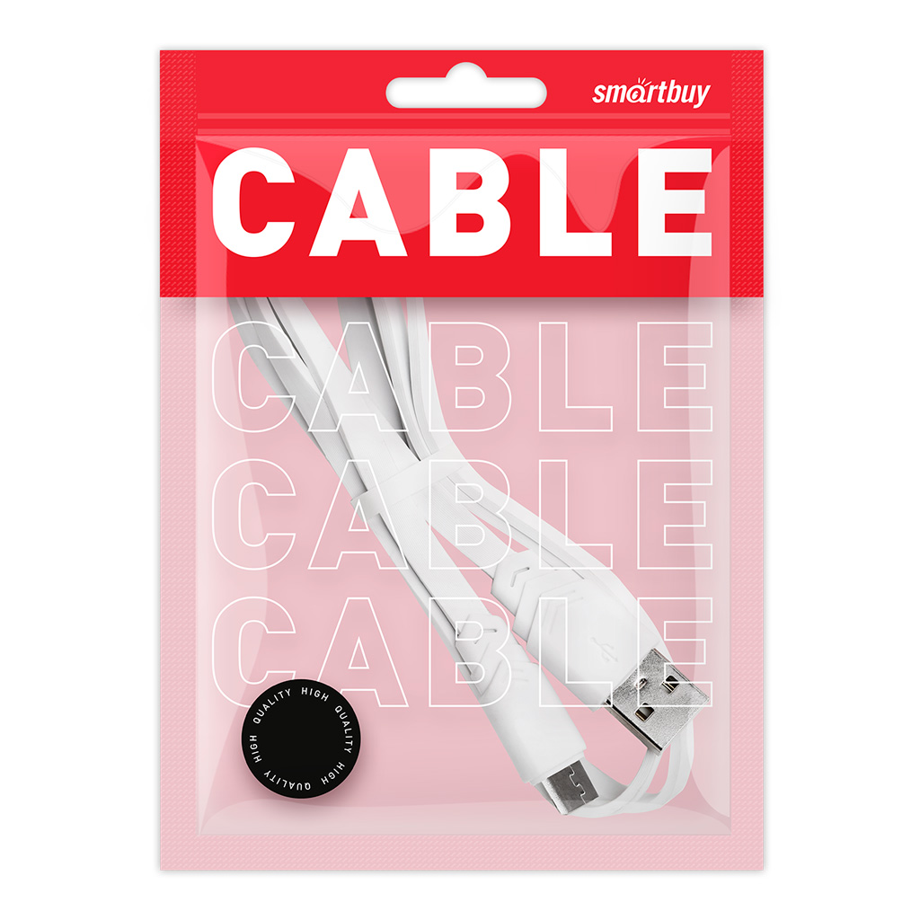 Дата-кабель Smartbuy USB - micro USB, плоский, длина 1 м, белый (iK-12r white)