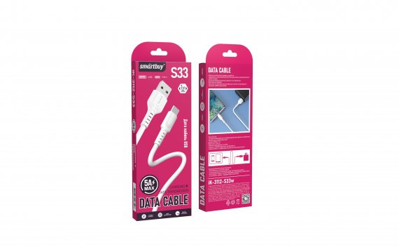 Кабель для зарядки и передачи данных S33 Type C белый, 5 А, мощь, 1 м, TPE, Smartbuy (iK-3112-S33w)