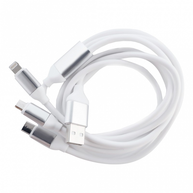 Дата-кабель Smartbuy USB - 3 в 1 Micro+C+8pin, резин, толст. 1.2 м, до 3А белый (iK-312QBOMB white)