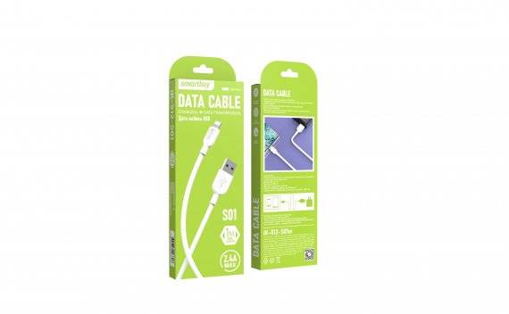 Кабель для зарядки и передачи данных S01 Lightning белый, 2.4 А, 1 м, Smartbuy (iK-512-S01w)