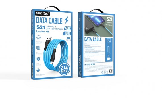 Кабель для зарядки и передачи данных S21 Lightning синий, 2.4 А, сил.,1 м, Smartbuy (iK-512-S21bb)