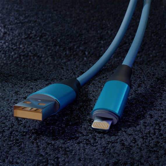 Кабель для зарядки и передачи, супертолстый BOLD LIGHTNING синий, 3А, TPE, 1 м, Smartbuy
