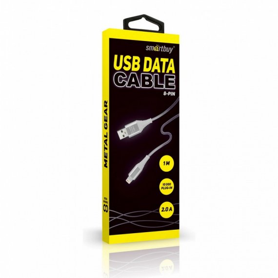 Кабель и коммутационное оборудование; Кабели для телефонов, планшетов, гаджетов; Кабели в коробках серия Metal Gear, 2 Ампера, 1 Метр, цвета в ассортименте, Micro, Type C и 8pin