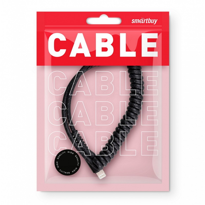 Дата-кабель Smartbuy USB - 8-pin для Apple, спиральный, длина 1,0 м, черный (iK-512sp black)/500