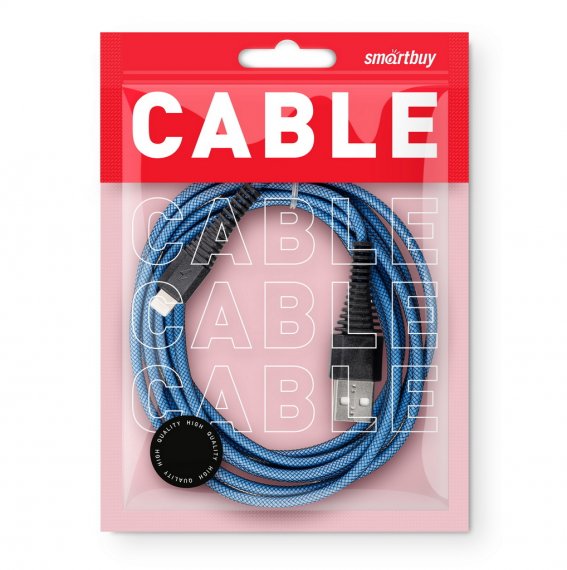 Дата-кабель Smartbuy USB - 8 pin, "карбон", экстрапрочный, 2.0 м, до 2А, синий (iK-520n-2 blue)