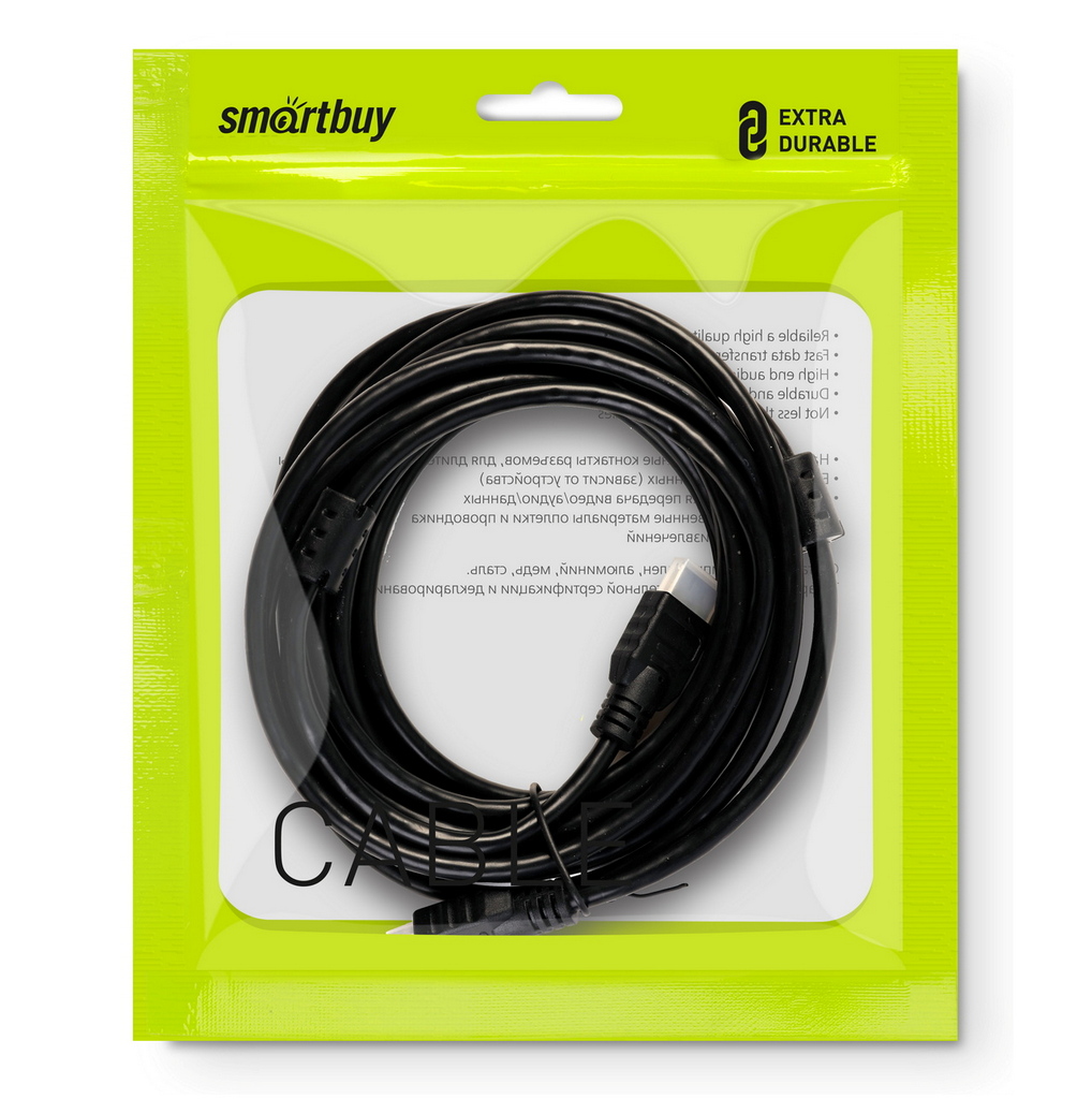 Кабель и коммутационное оборудование; Кабель HDMI, miniHDMI, microHDMI; Smartbuy, HDMI ver 1.4b c 2 фильтрами; HDMI --> HDMI