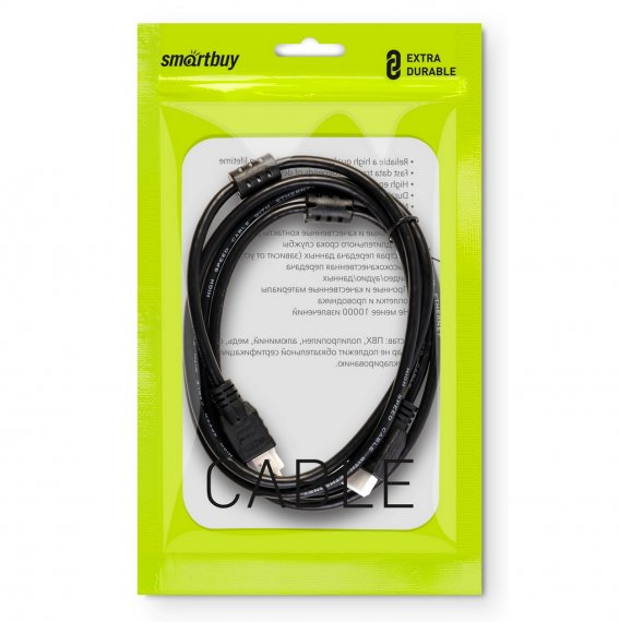 Кабель и коммутационное оборудование; Кабель HDMI, miniHDMI, microHDMI; Smartbuy, HDMI ver 1.4b c 2 фильтрами; HDMI --> HDMI
