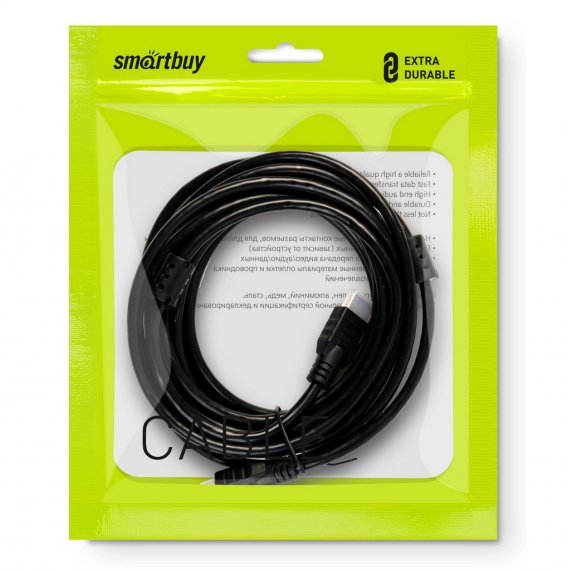 Представляем вашему вниманию высококачественный АудиоВидео кабель от Smartbuy. Модель оснащена интерфейсом HDMI ver.2.0 и имеет длину 1,5 метра, что обеспечивает удобство подключения. Особенностью данного кабеля является наличие двух фильтров.
