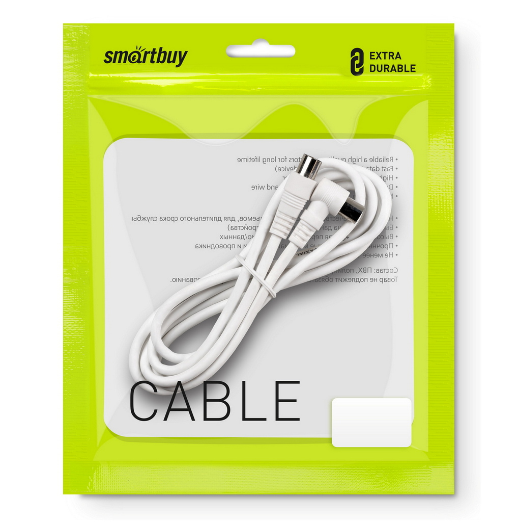 Представляем вам антенный кабель от известного бренда Smartbuy. Этот кабель оснащен разъемами типа M-M и имеет удобный угловой разъем. Длина кабеля составляет 1,8 метра, что позволяет удобно подключить ваш телевизор к антенне. Кабель выполнен из качественных материалов и обеспечивает стабильное соединение.
