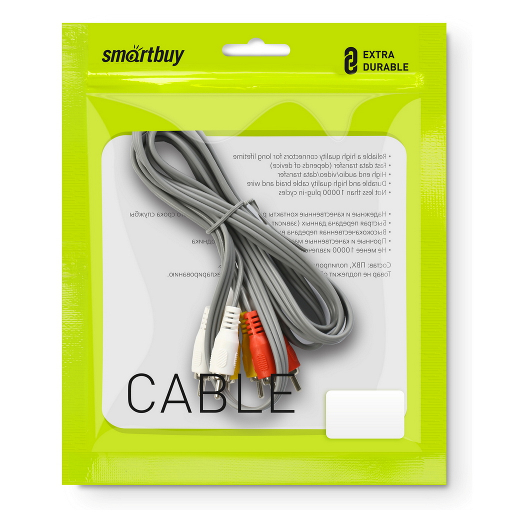 Кабель соединительный Smartbuy 3xRCA (M) - 3xRCA (M), 5,0 м, в пакете (KA-235-100)/20
