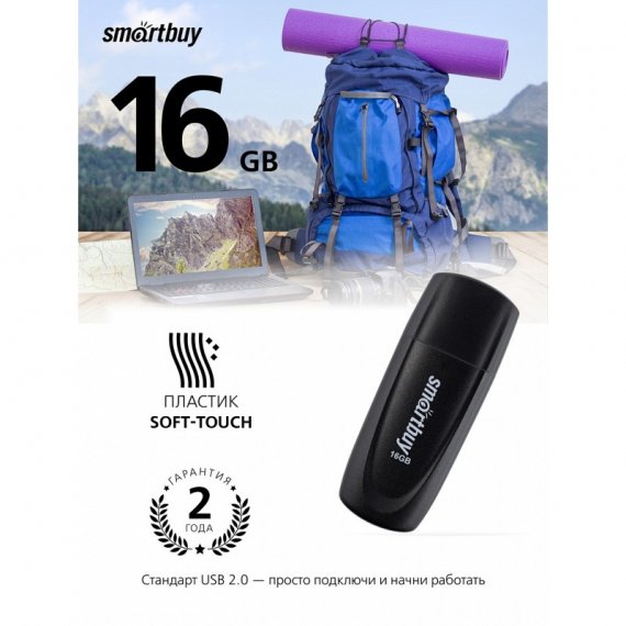 SmartBuy Scout Black - это высококачественный USB Flash Drive объемом 16GB. Он обеспечивает быстрый и удобный доступ к данным, а также отличается надежностью и долговечностью. Этот накопитель подключается к компьютеру через интерфейс USB 2.0.