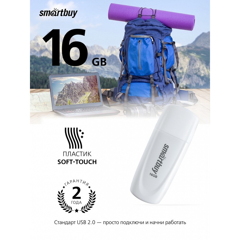 SmartBuy Scout White - это надежный и удобный USB Flash Drive объемом 16GB. Он подключается к компьютеру через интерфейс USB 2.0, что обеспечивает высокую скорость передачи данных. Эта модель идеально подходит для хранения и переноса важных файлов, документов и мультимедиа.