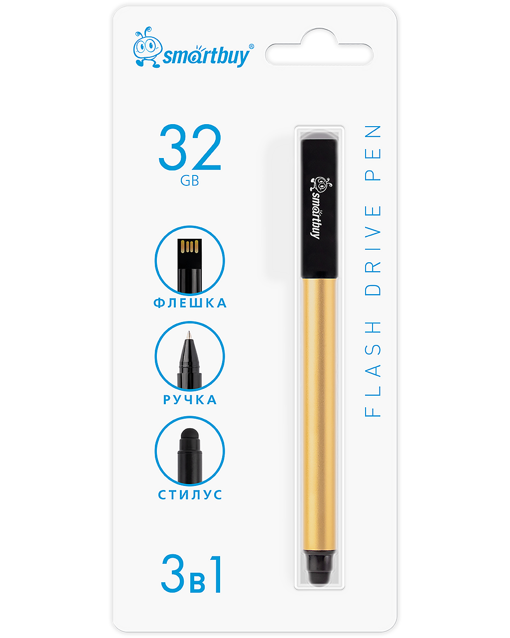 UFD 2.0 Smartbuy 032GB ручка-флэшка-стилус, золотистая, в блистере (SB032GB2GRTL)