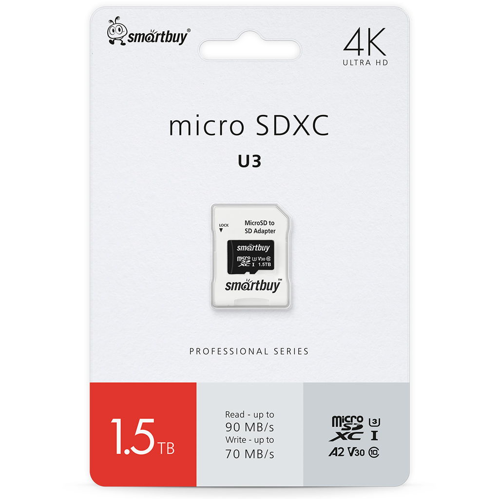 Smartbuy SB1T5SDP01 micro SDXC карта памяти 1.5 TB Pro U3/A2/V30; R/W:90/70 MB/s