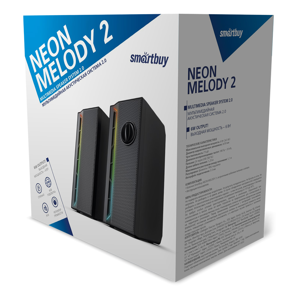 Акустическая система 2.0 Smartbuy NEON MELODY 2, RGB-подсветка, 6Вт, черная (SBA-4600)/16
