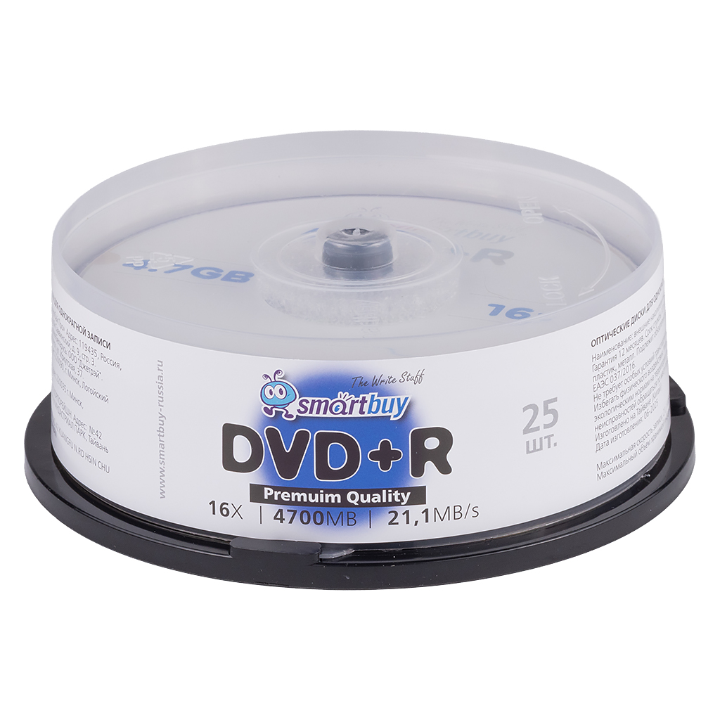 Smartbuy SBDVPR25 Диски для записи DVD+R, 4.7 Гб, 16x, 25шт