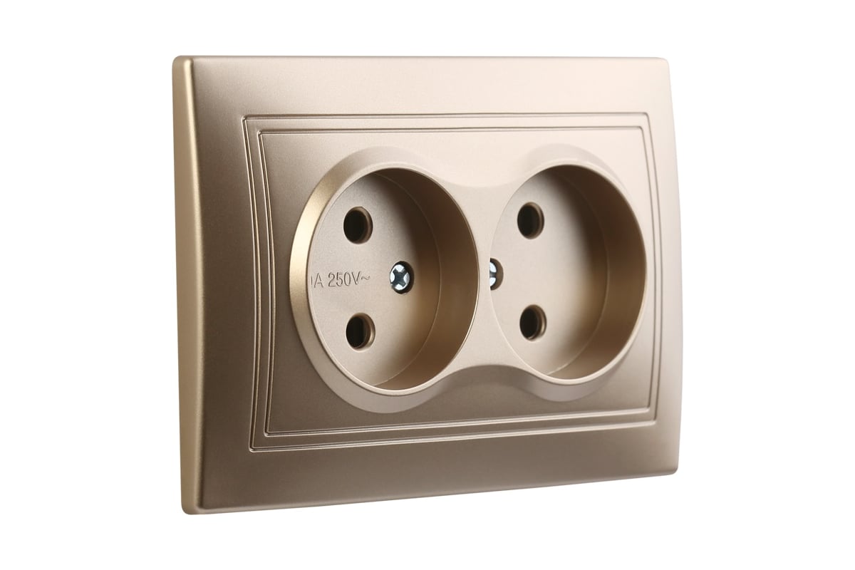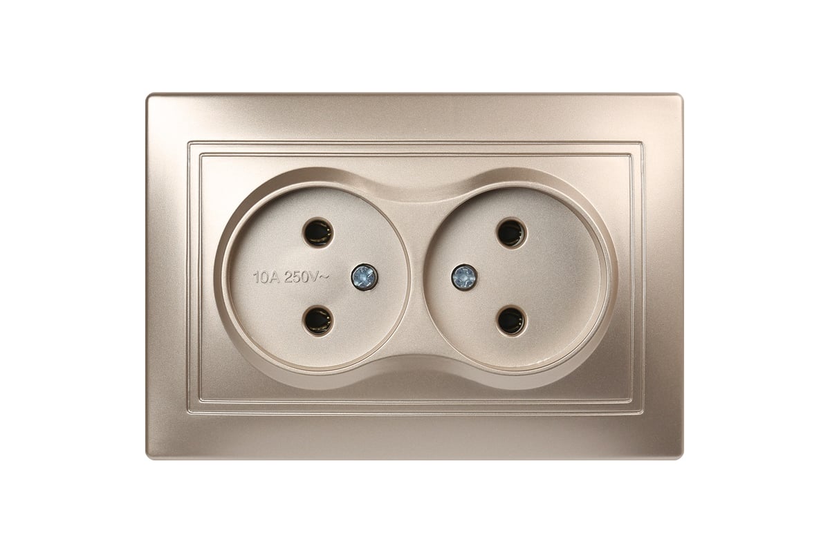 Розетка двойная одноместная без заземления 10А шампань, Венера (SBE-01c-10-S2-N-c)