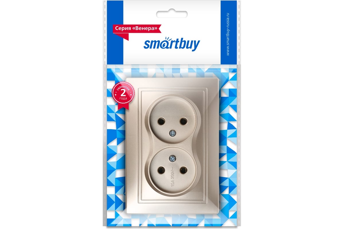 Smartbuy SBE-01c-10-S2-N-c Розетка двойная одноместная без заземления 10А шампань, Венера