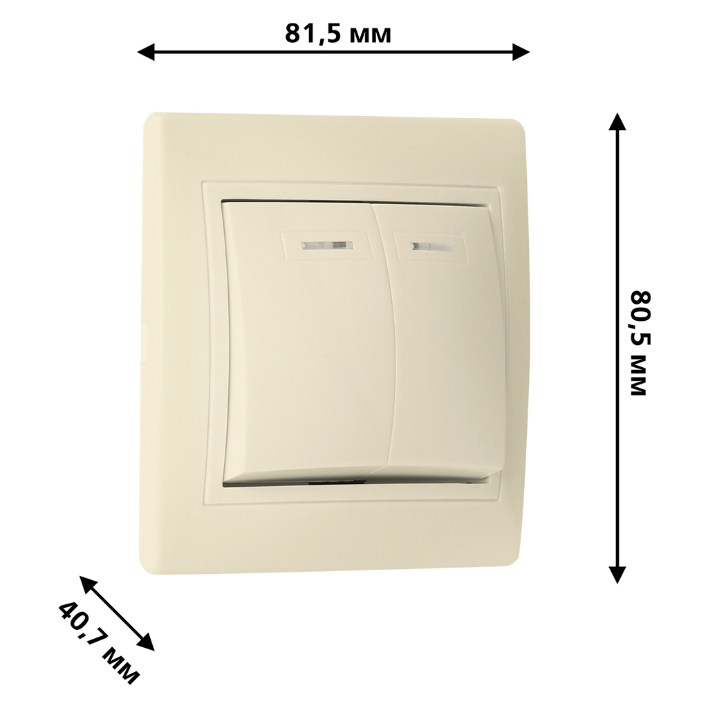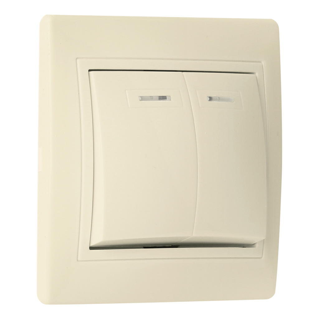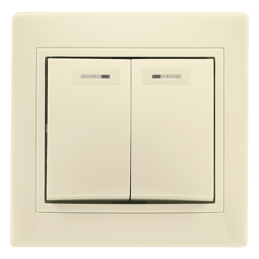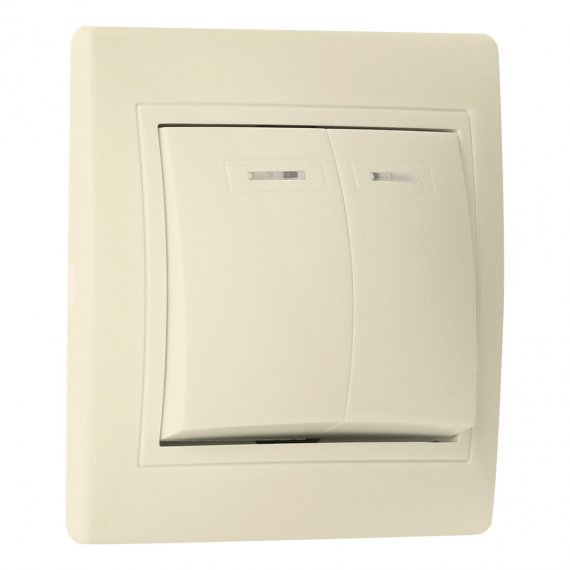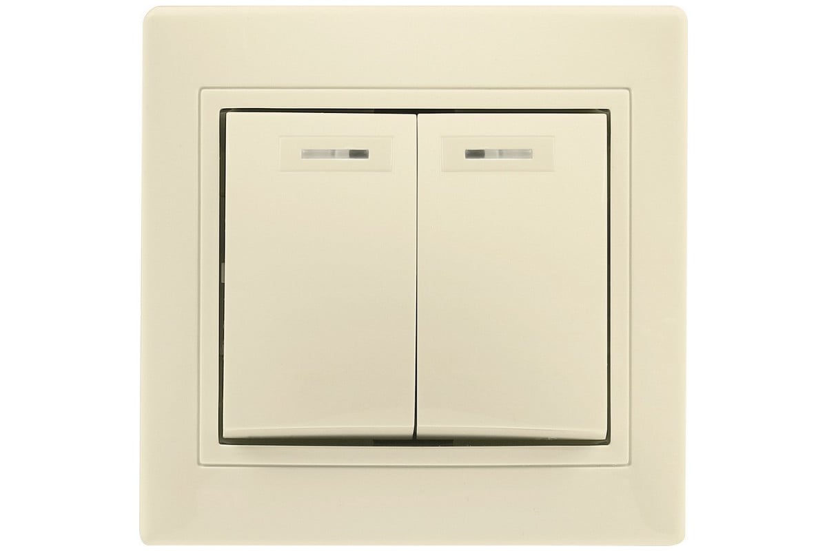 Выключатель 2-клавишный с индикатором 10А бежевый, керамика Венера (SBE-01i-10-SW2-1-c)