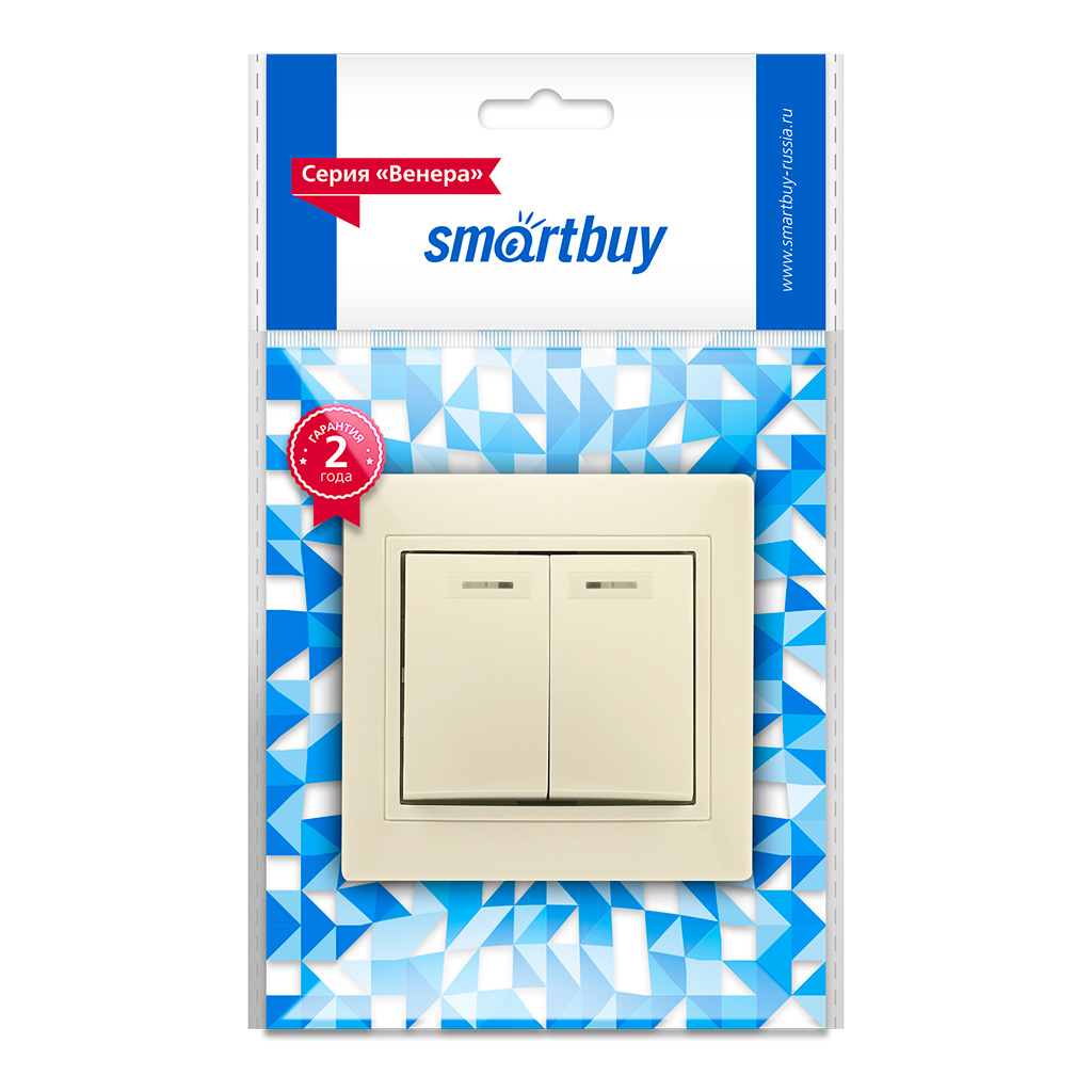 Smartbuy SBE-01i-10-SW2-1-c Выключатель 2-клавишный с индикатором 10А