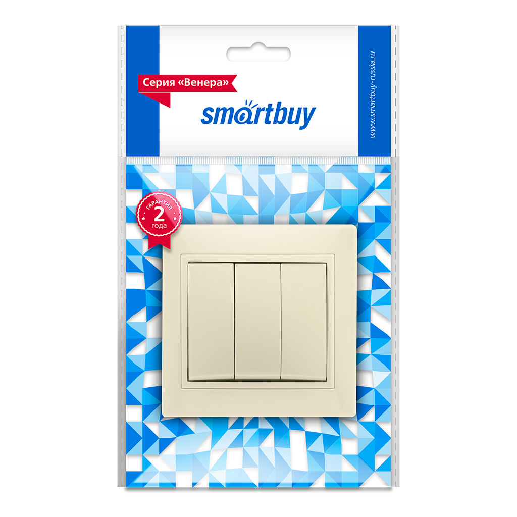 Smartbuy SBE-01i-10-SW3-0 Выключатель 3-клавишный 10А бежевый Венера