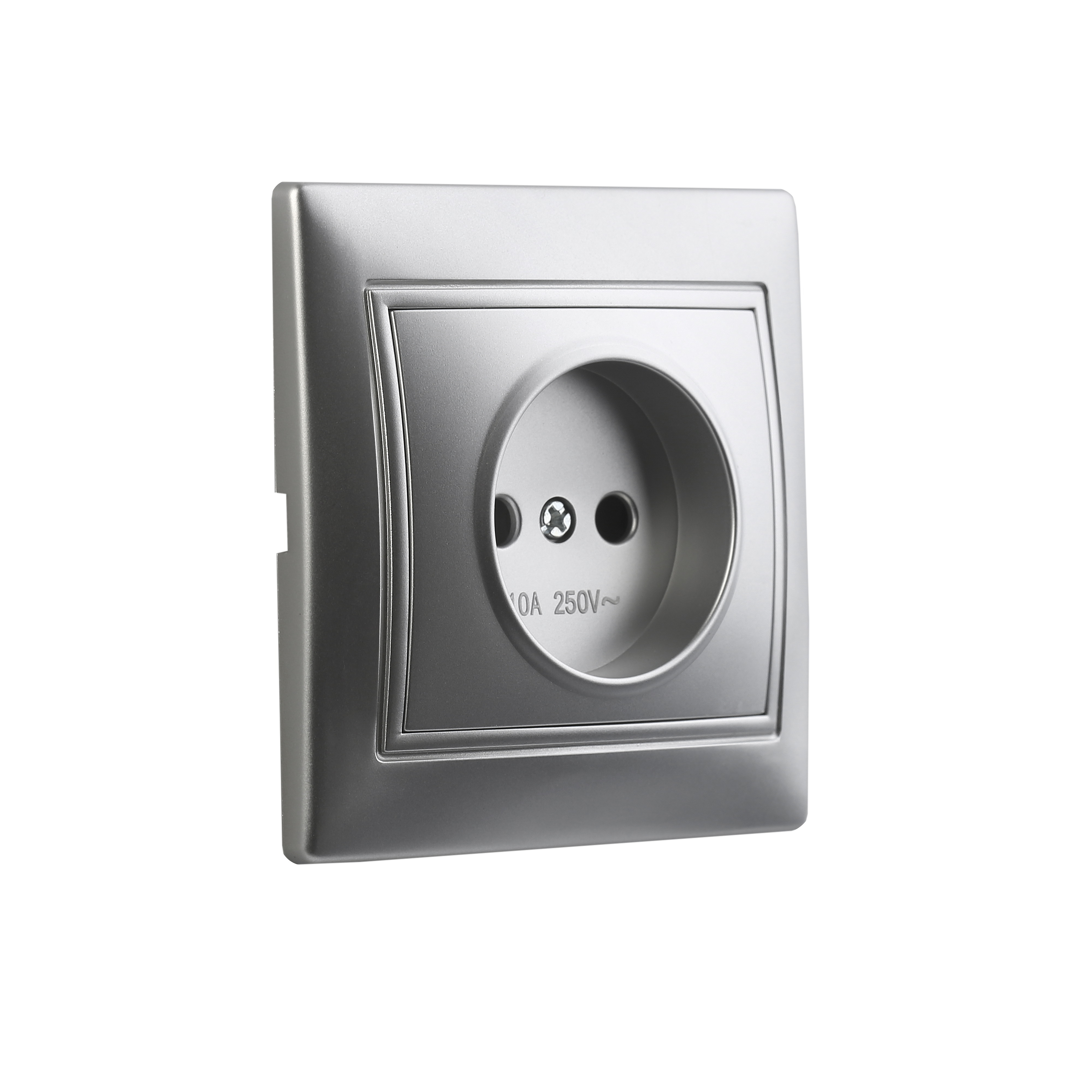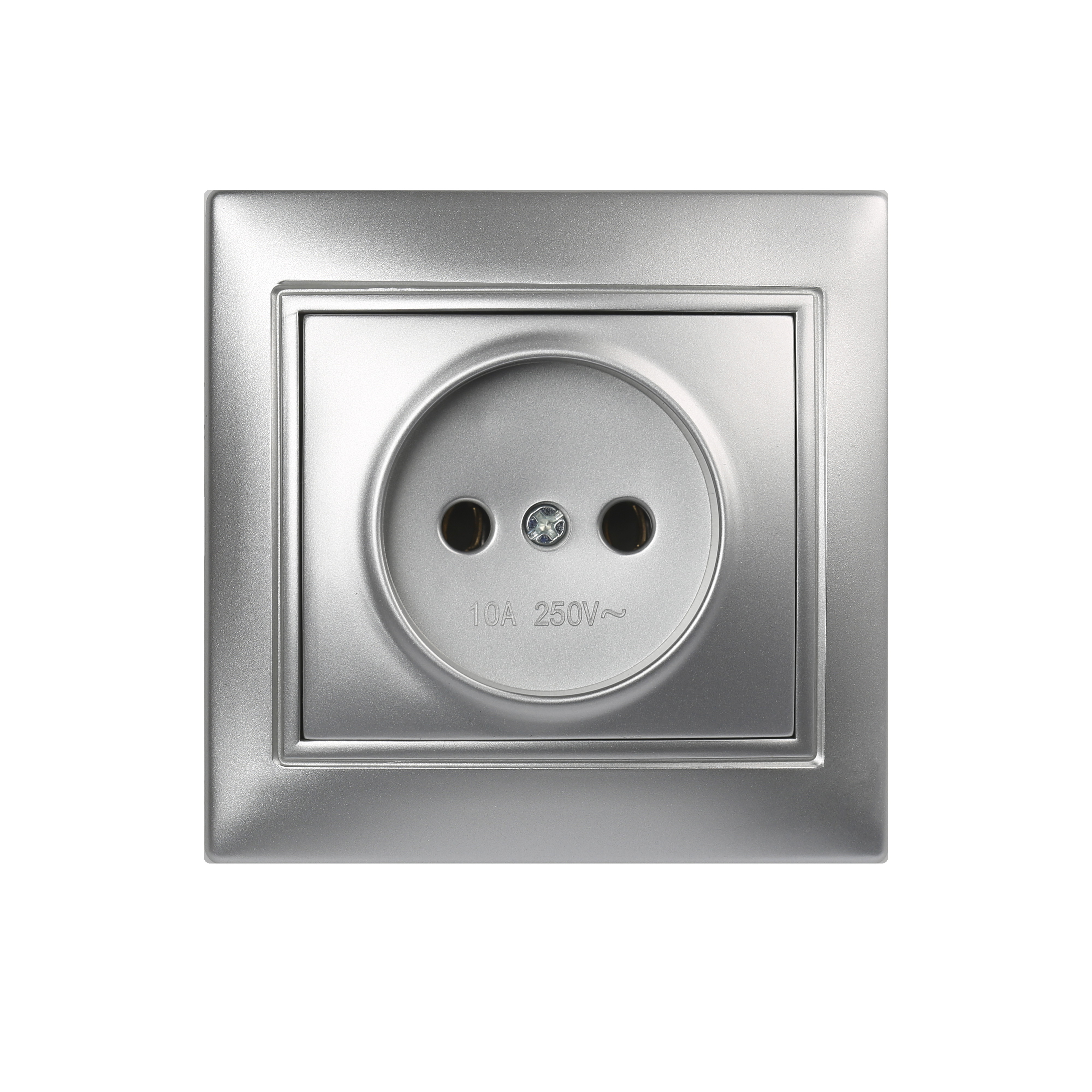Розетка 1-местная без заземления 10А серебро, Венера (SBE-01s-10-S1-N-c)