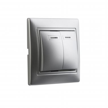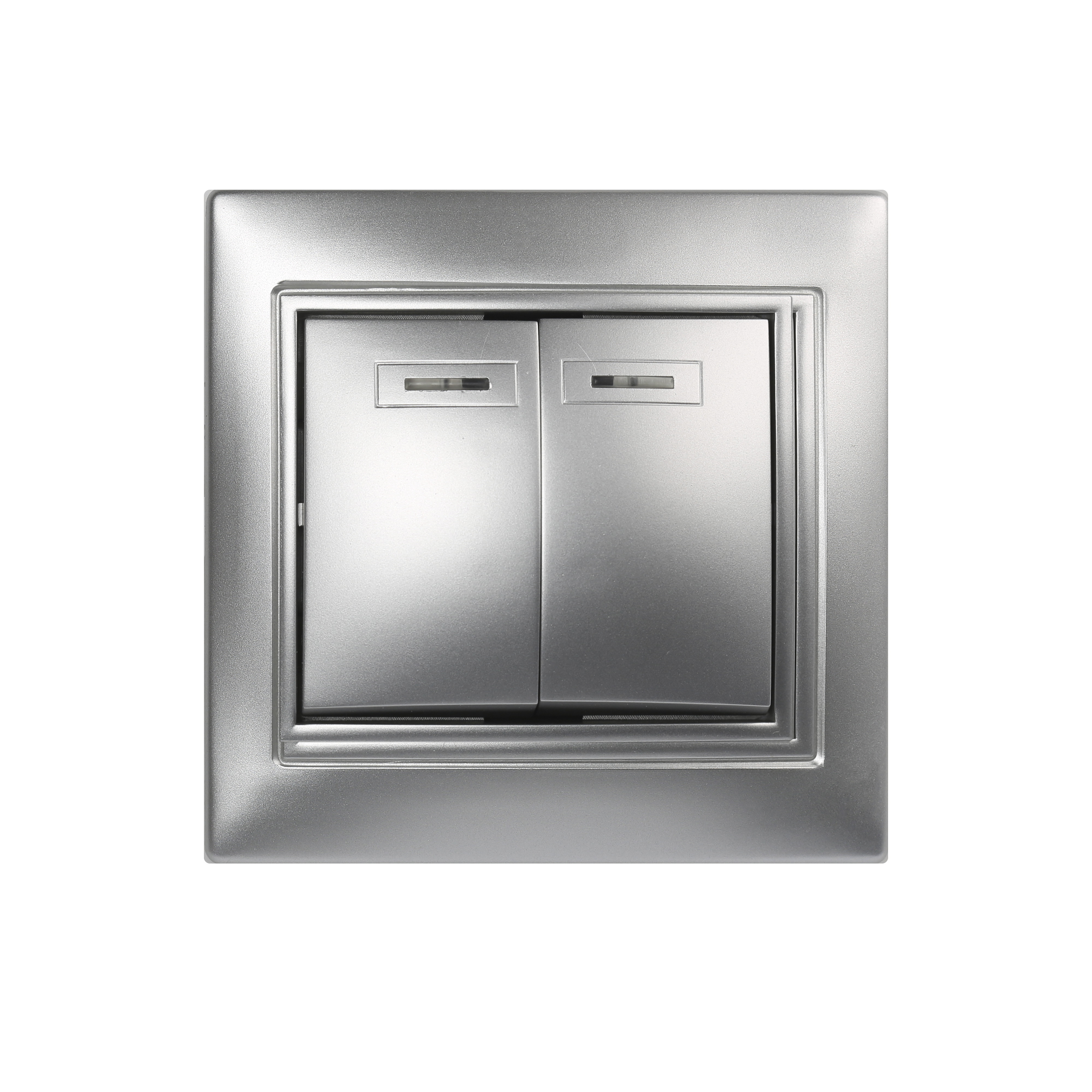 Выключатель 2-клавишный с индикатором 10А серебро, Венера (SBE-01s-10-SW2-1-c)