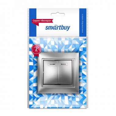 Smartbuy SBE-01s-10-SW2-1-c Выключатель 2-клавишный с индикатором 10А серебро, Венера