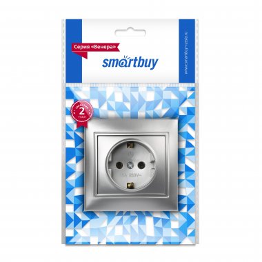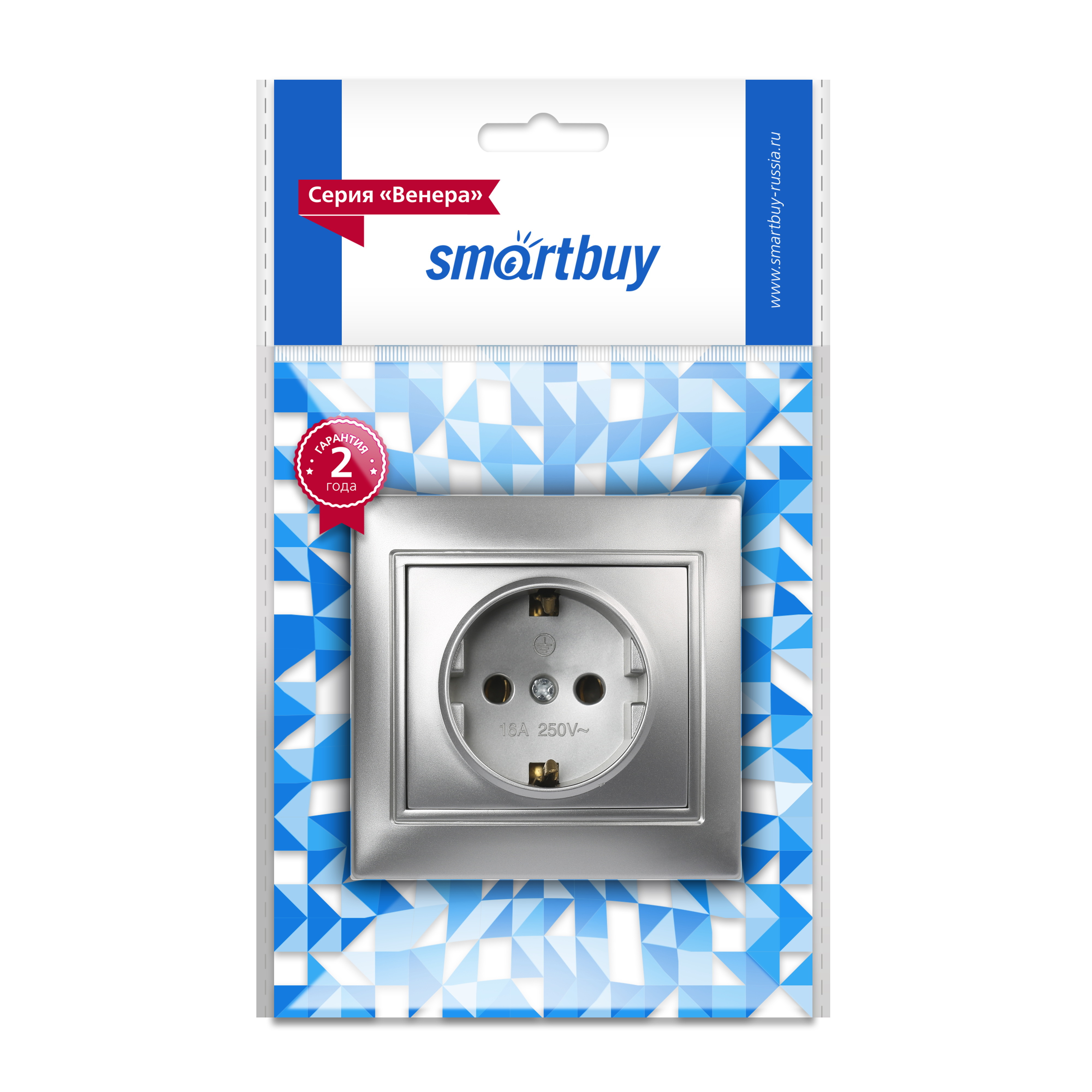 Smartbuy SBE-01s-16-S1-Z-c Розетка 1-местная с заземлением 16А серебро, Венера