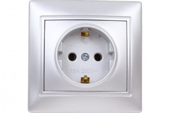 Розетка 1-местная с заземлением 16А серебро, Венера (SBE-01s-16-S1-Z-c)