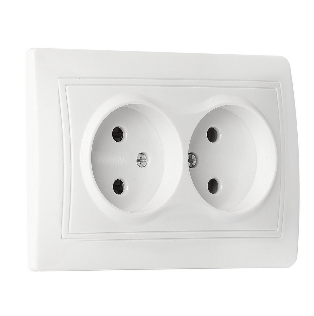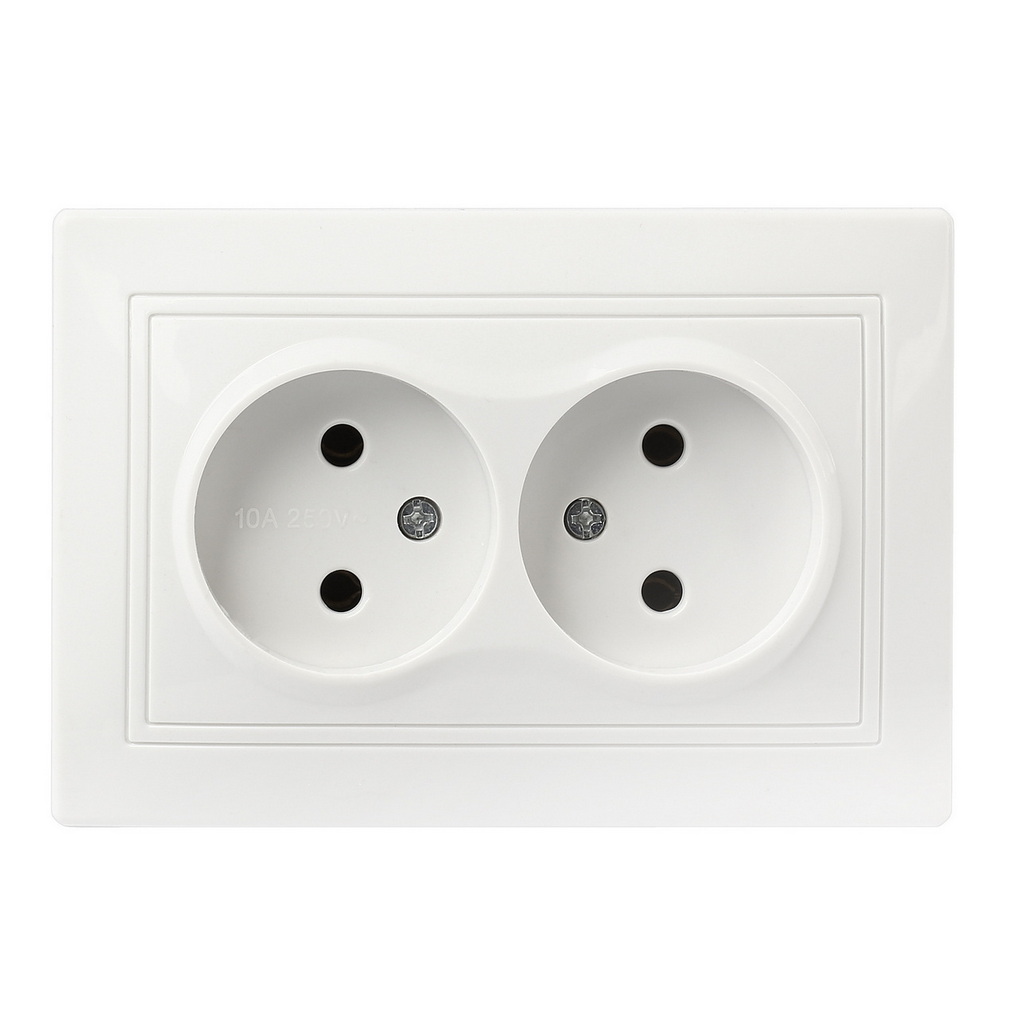 Розетка двойная одноместная без заземления 10А белая, керамика Венера (SBE-01w-10-S2-N-c)