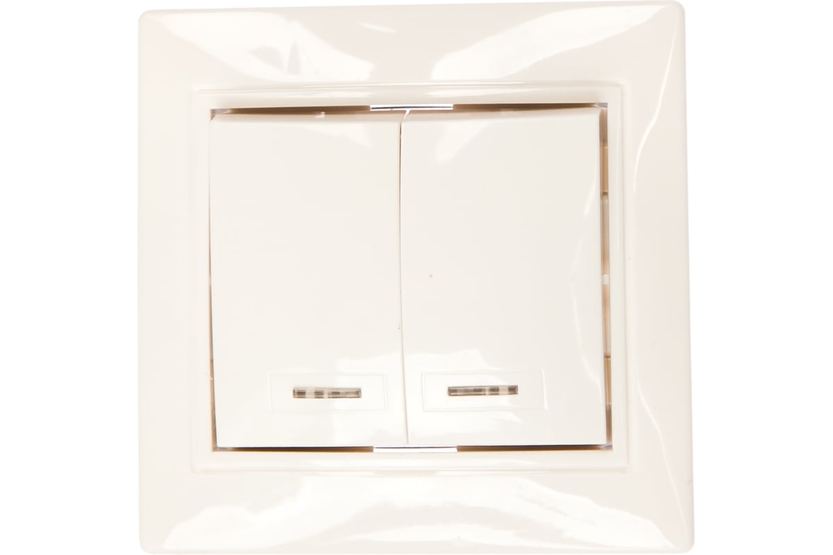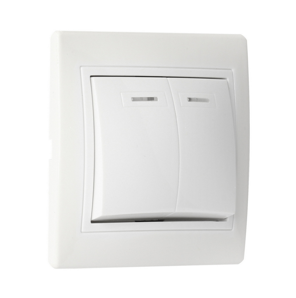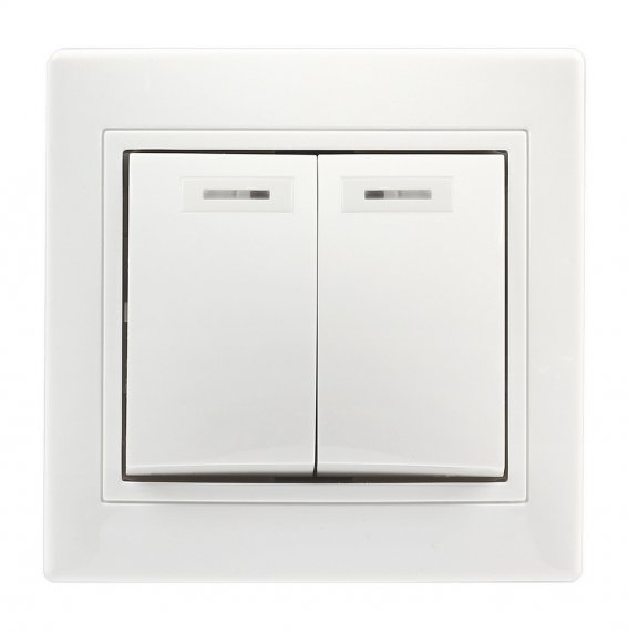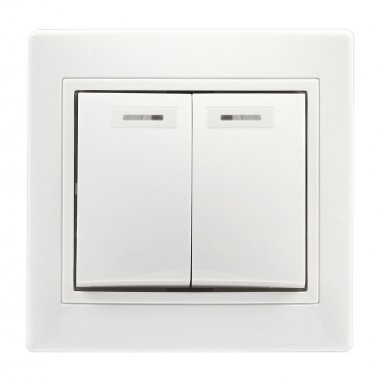 Выключатель 2-клавишный с индикатором 10А белый, керамика Венера (SBE-01w-10-SW2-1-c)