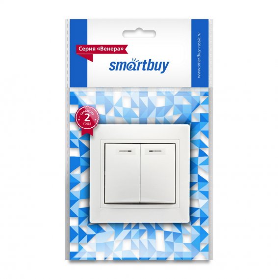 Smartbuy SBE-01w-10-SW2-1-c Выключатель 2-клавишный с индикатором 10А