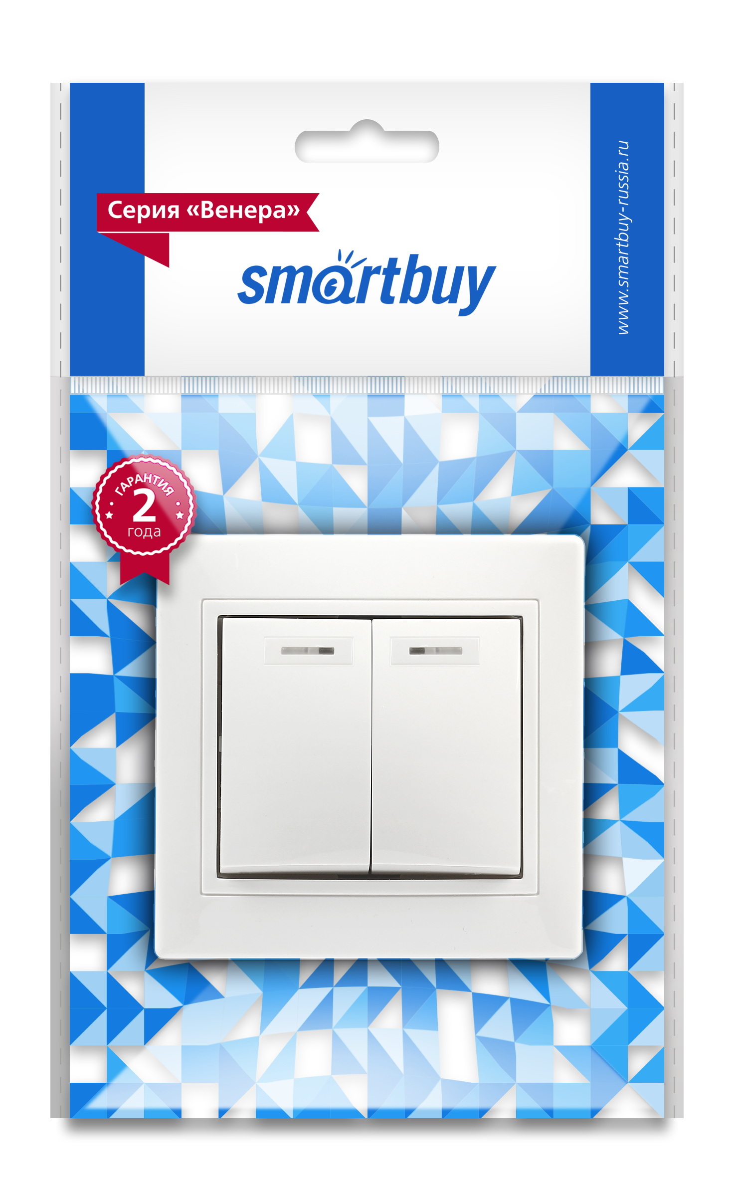 Smartbuy SBE-01w-10-SW2-1 Выключатель 2-клавишный с индикатором 10А