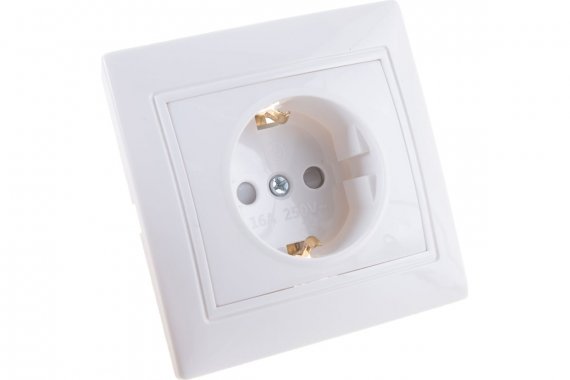 Розетка 1-местная с заземлением 16А белая с защ. штор. Венера (SBE-01w-16-S1-1Z)