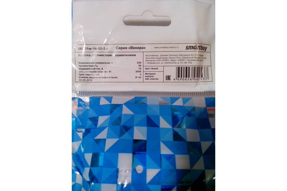 Технические характеристики Smartbuy Венера с заземлением 16А белая, керамика SBE-01w-16-S2-Z-c