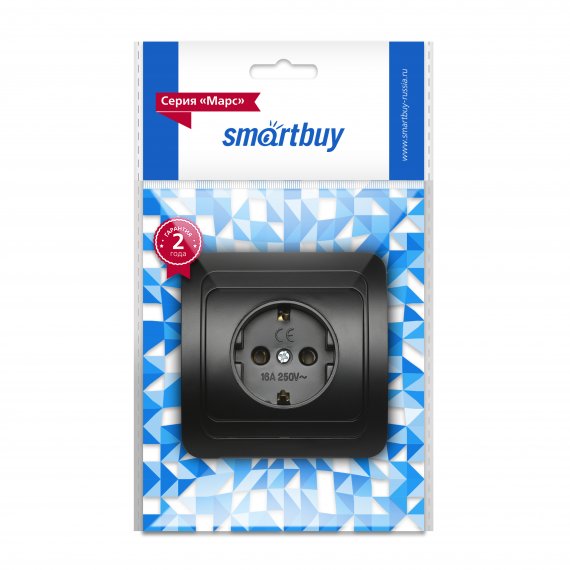 Smartbuy SBE-02b-16-S1-Z-c Розетка 1-местная с заземлением 16А черная Марс