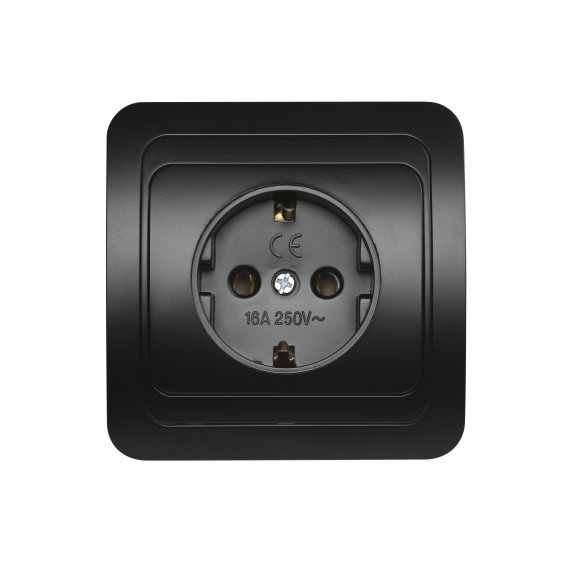 Розетка 1-местная с заземлением 16А черная Марс (SBE-02b-16-S1-Z-c)
