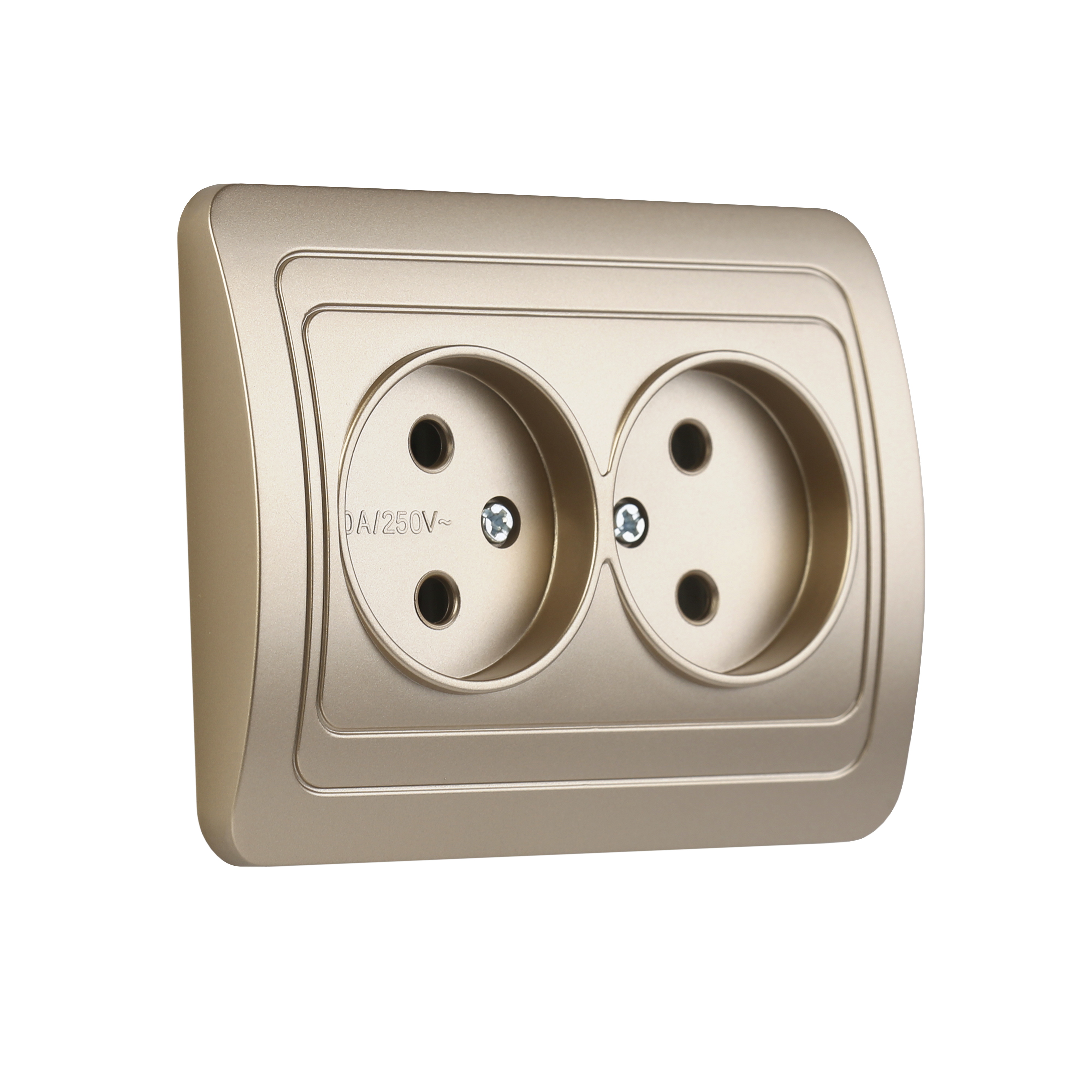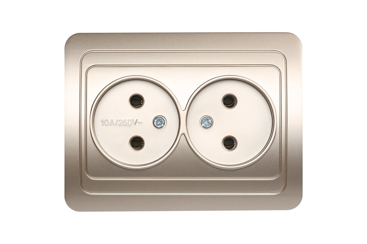 Розетка двойная одноместная без заземления 10А шампань, Марс (SBE-02c-10-S2-N-c)