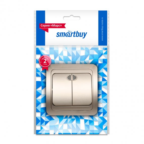 Smartbuy SBE-02c-10-SW2-1-c Выключатель 2-клавишный с индикатором 10А шампань Марс