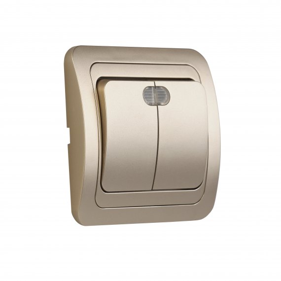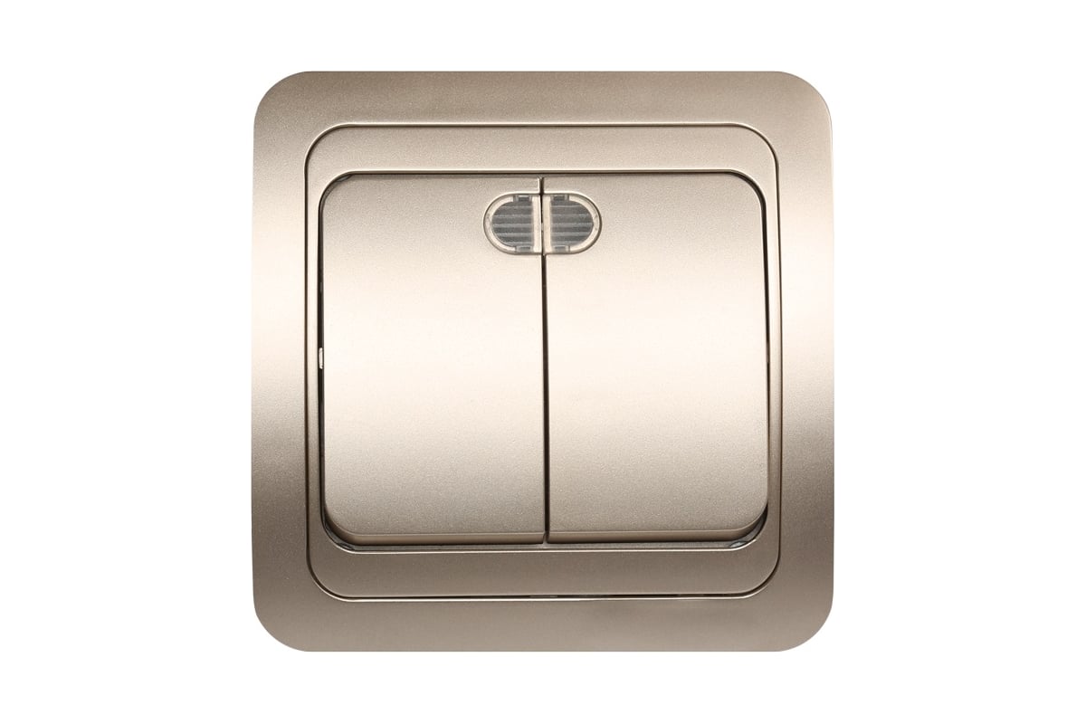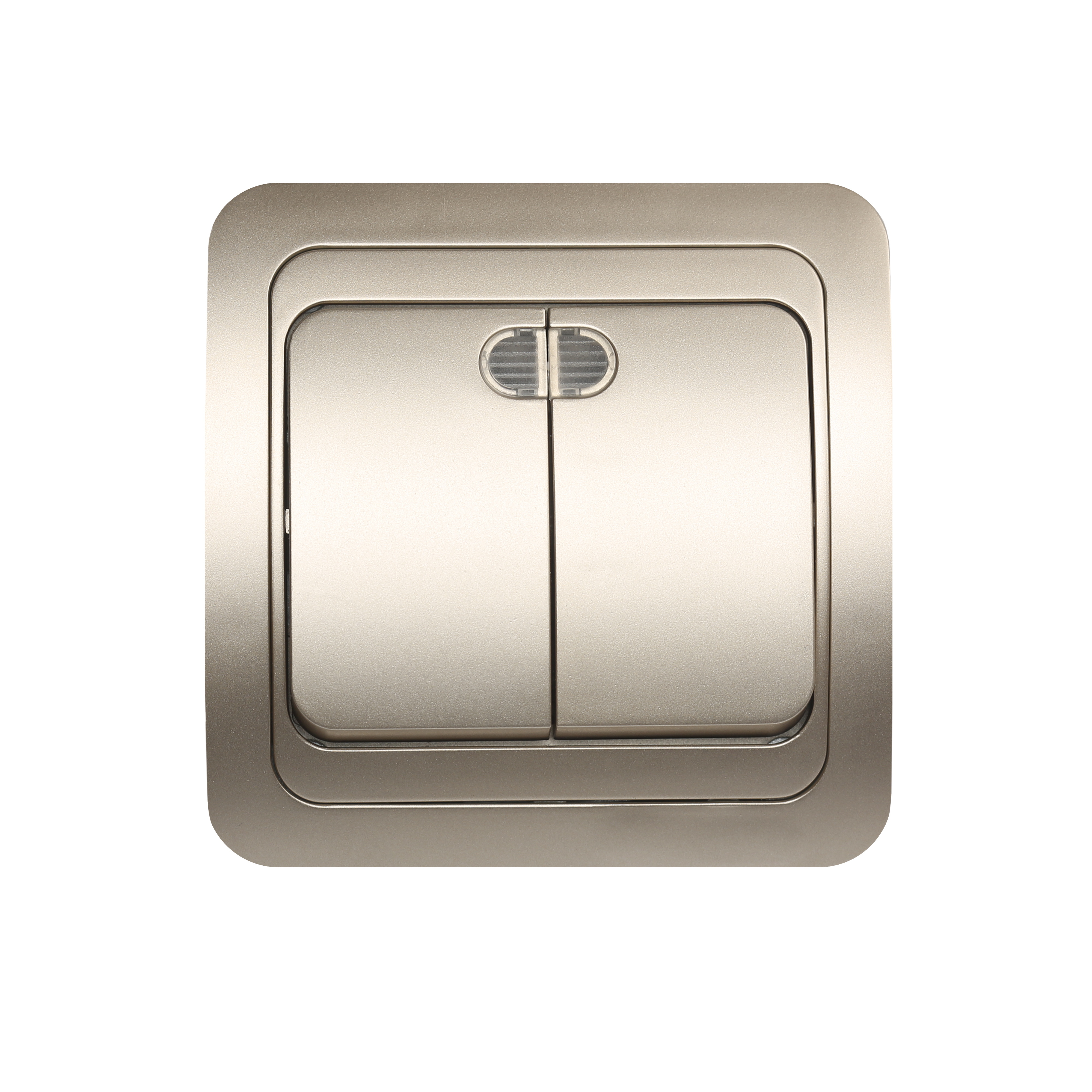 Выключатель 2-клавишный с индикатором 10А шампань Марс (SBE-02c-10-SW2-1-c)