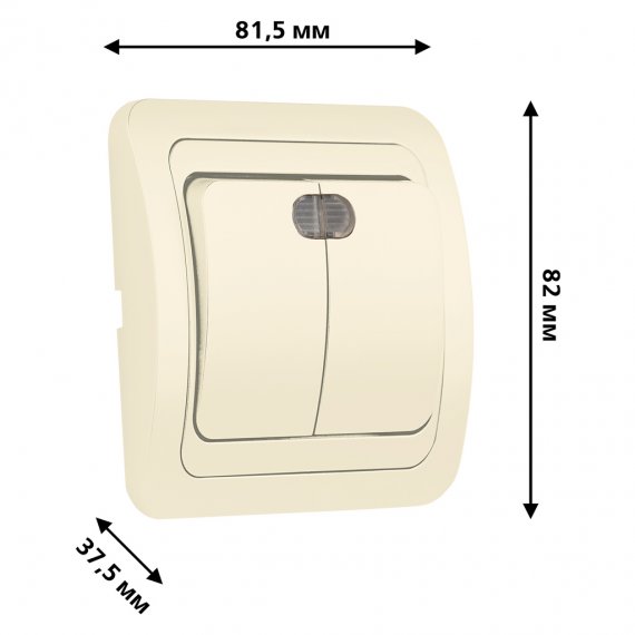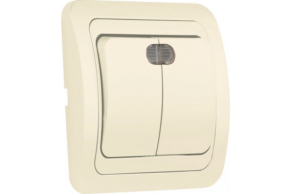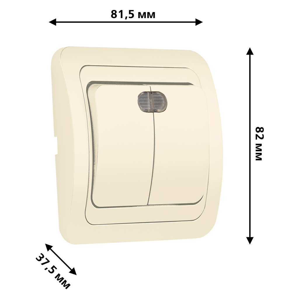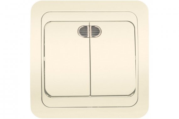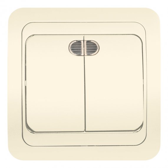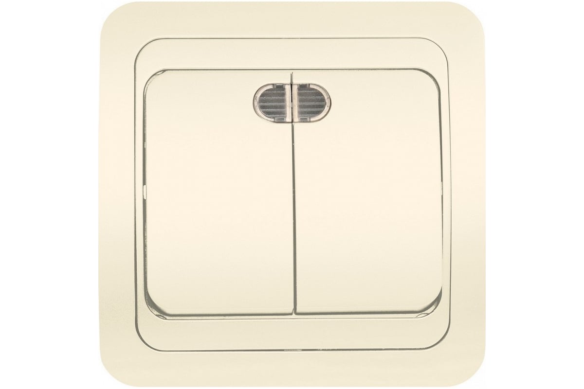 Выключатель 2-клавишный с индикатором 10А бежевый, керамика Марс (SBE-02i-10-SW2-1-c)